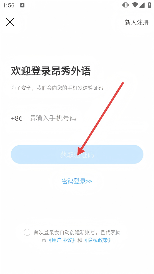 4、跳转至登录界面时,输入手机号并勾选协议,点击【获取验证码】完成登录验证。