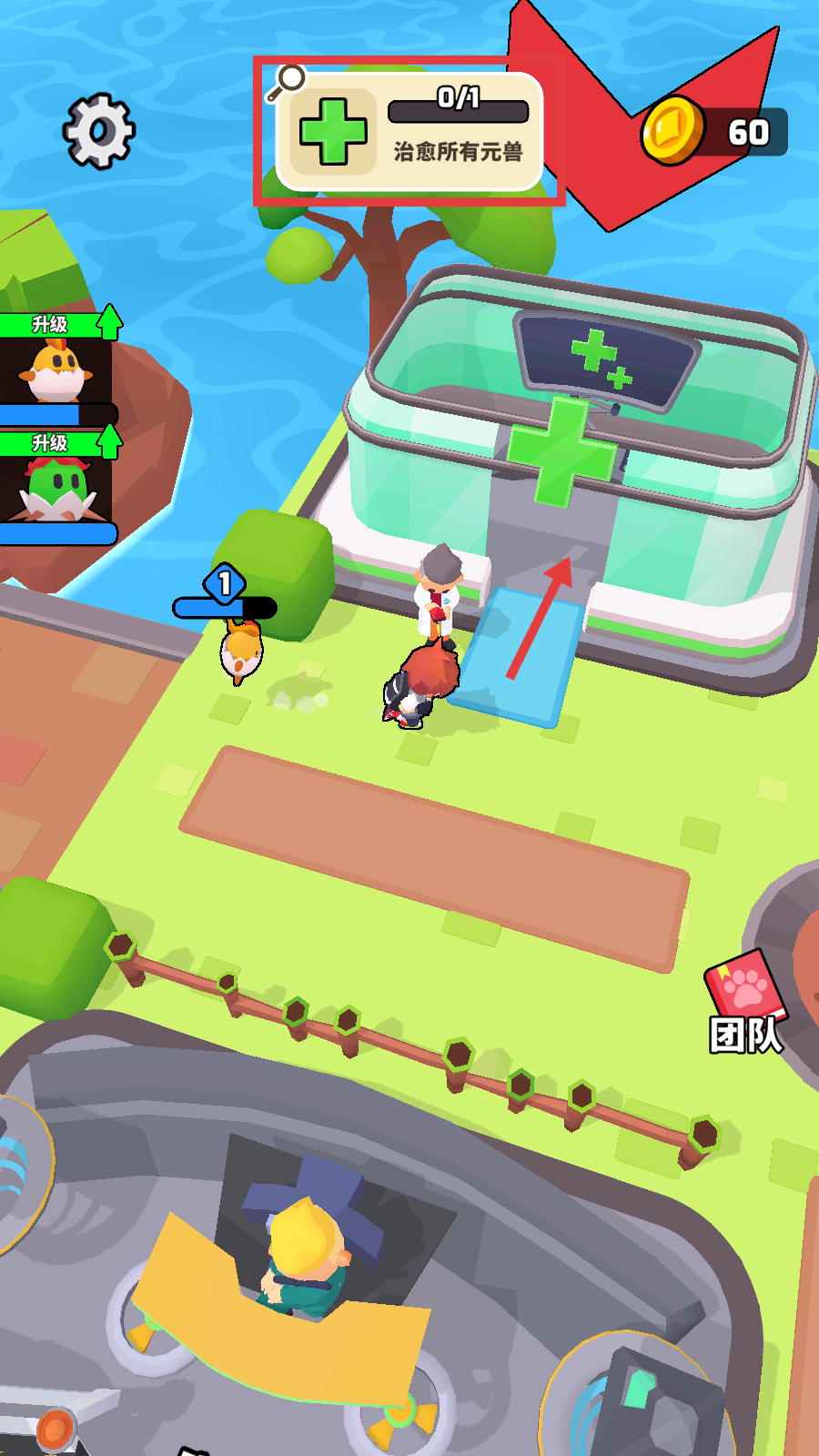 4、留意界面上方【治愈所有元兽】的任务,带领受伤元兽前往医疗建筑,借助医生恢复它们的状态。