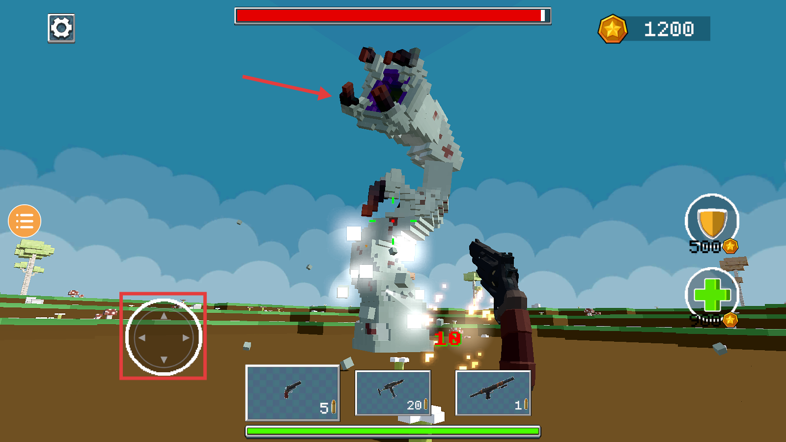 2、战斗中,滑动左侧摇杆控制移动,瞄准怪物猛攻,合理切换武器,持续输出,消耗其血量呢。