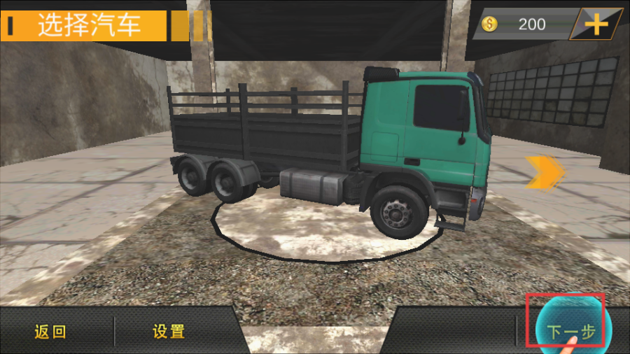 2、在选车界面,选好卡车后,点击【下一步】,进入驾驶准备阶段。