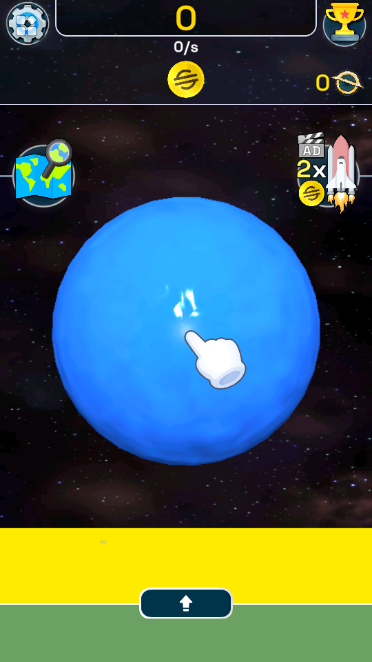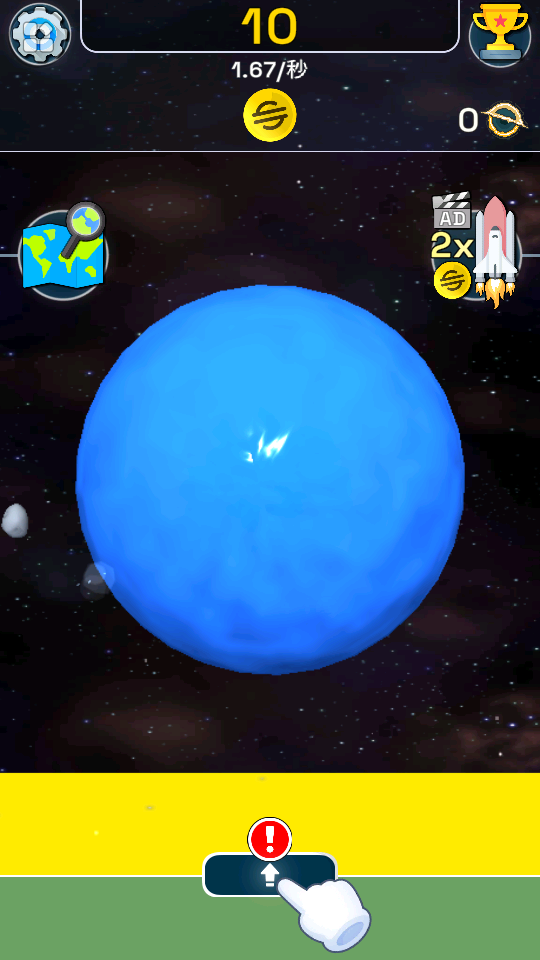 1、点击蓝色星球,开始积累资源,上方数值会逐步增长。
