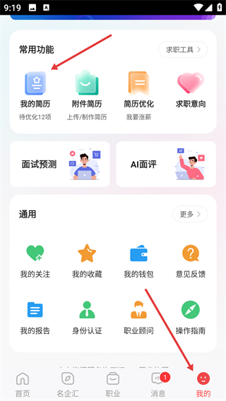 1、在【我的】页面中,找到【我的简历】选项并点击。