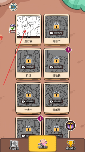 1、选择可进入的关卡,比如【逛灯会】,点击后进入该关卡的拼图挑战。
