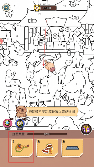 2、进入关卡后,根据提示,拖动下方拼图碎片到对应位置,开始完成拼图。