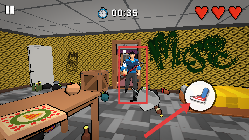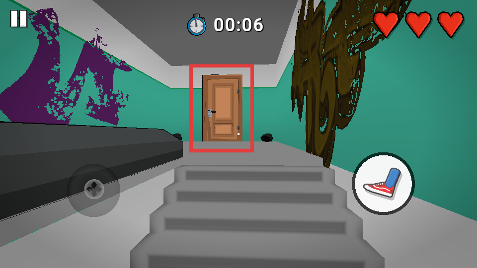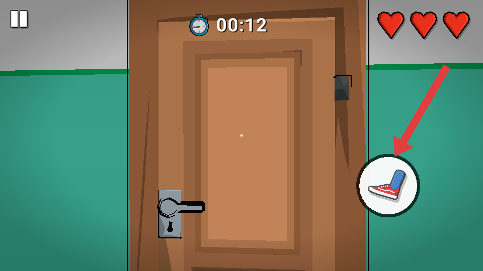 2、到达门前,点击【鞋子】图标,触发踹门动作,进入下一区域。