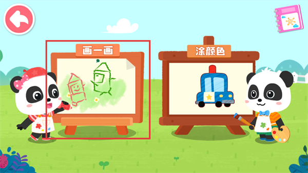 1、进入游戏后选择【画一画】区域,根据图案轮廓用画笔在画板勾勒线条,完成简单图案的基础绘制步骤。
