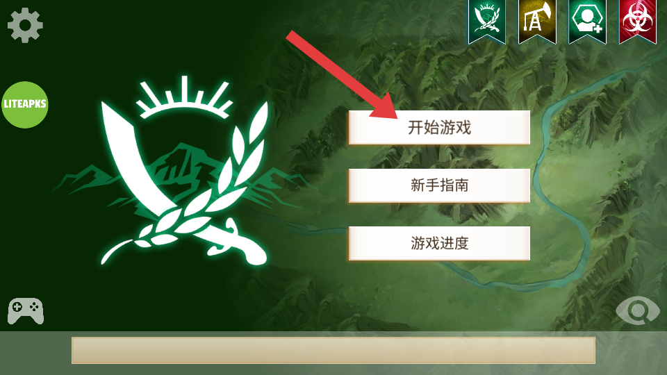 1、在游戏主界面,点击【开始游戏】按钮,进入游戏的地图选择环节。