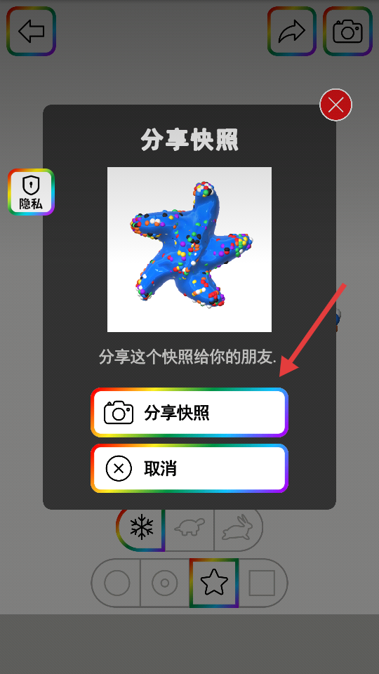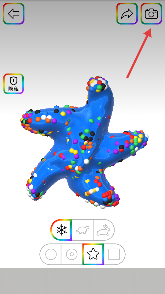 3、创作完成后,点击右上角相机图标,拍摄彩泥造型快照。
