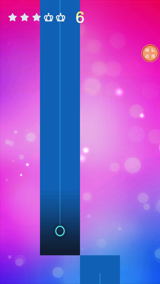 3、游戏时,操控圆形图标跟随节奏,在蓝色轨道区域移动,避开方块,获取分数与星级评价。