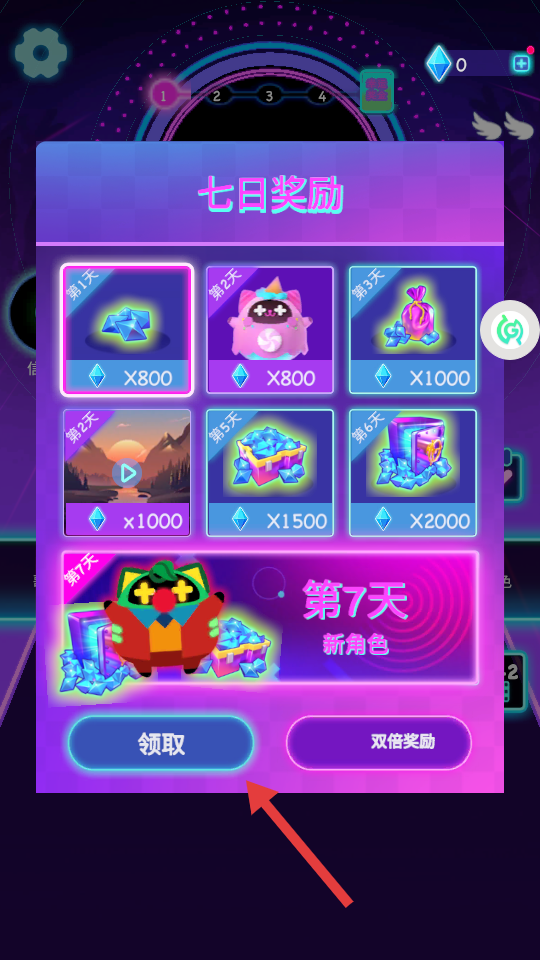 1、在“七日奖励”界面,点击【领取】获取钻石等奖励,也可选择【双倍奖励】。