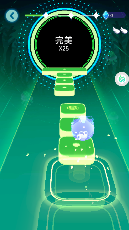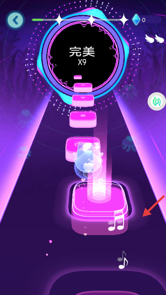 3、让角色精准踩中粉色方块,获取【完美-X9】评价,积累连续完美次数,同时收集音符。