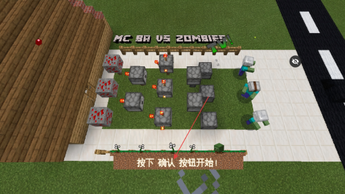 1、游戏初始界面,按下【确认】按钮,即可开始“MC-BA-VS-ZOMBIES”游戏,开启抵御僵尸的挑战。
