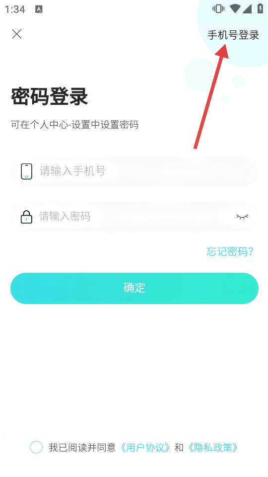 3、在登录页选择【手机号登录】,切换到手机号验证登录界面。