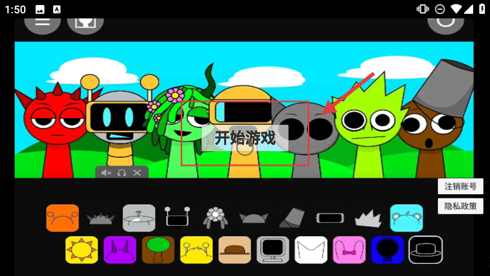 1、点击【开始游戏】按钮进入游戏,可在界面下方选择图标自定义角色外观。