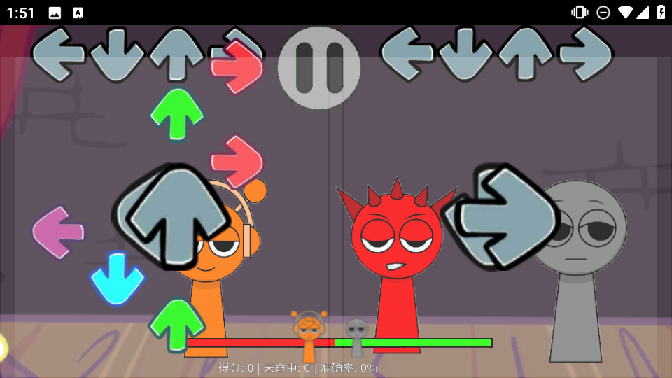 3、游戏过程中,及时点击落下的彩色箭头按钮,以此积累得分和准确率。
