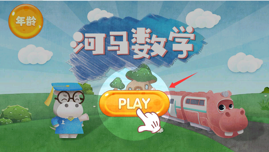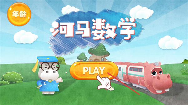 1、在【河马数学】的启动界面,找到橙色的【PLAY】按钮并点击,即可进入该软件的数学学习关卡环节。