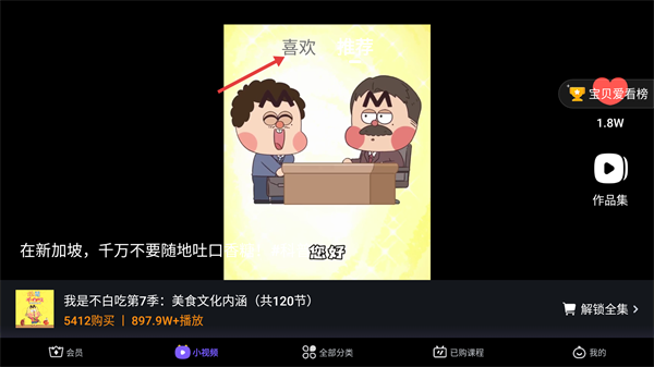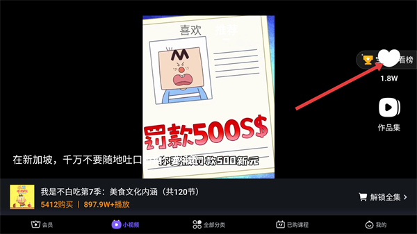 3、完成对该视频点赞后,点击上方【喜欢】。