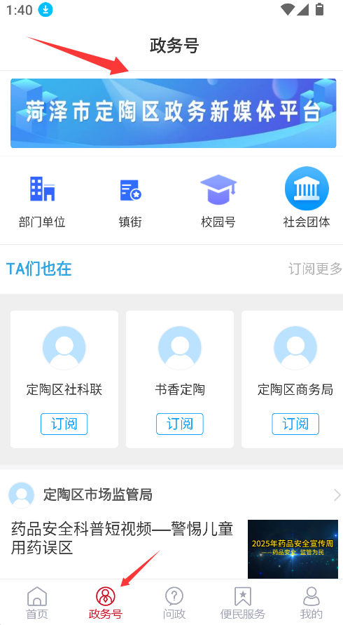 2、在政务号内容页面,浏览展示的政务动态与信息。