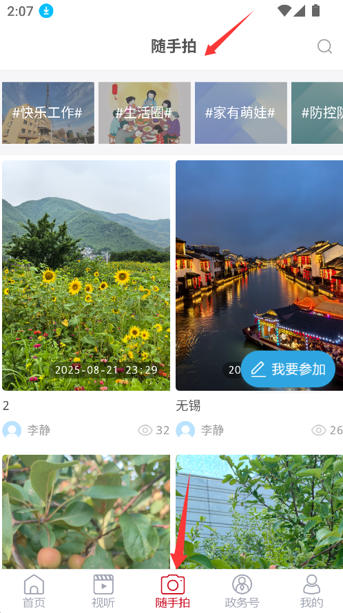 3、点击底部“随手拍”,可查看相关内容,还能参与分享。