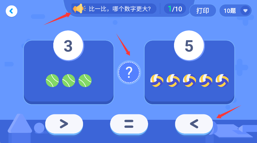 1、进入首面找到对应练习场景,选看图比大小界面。