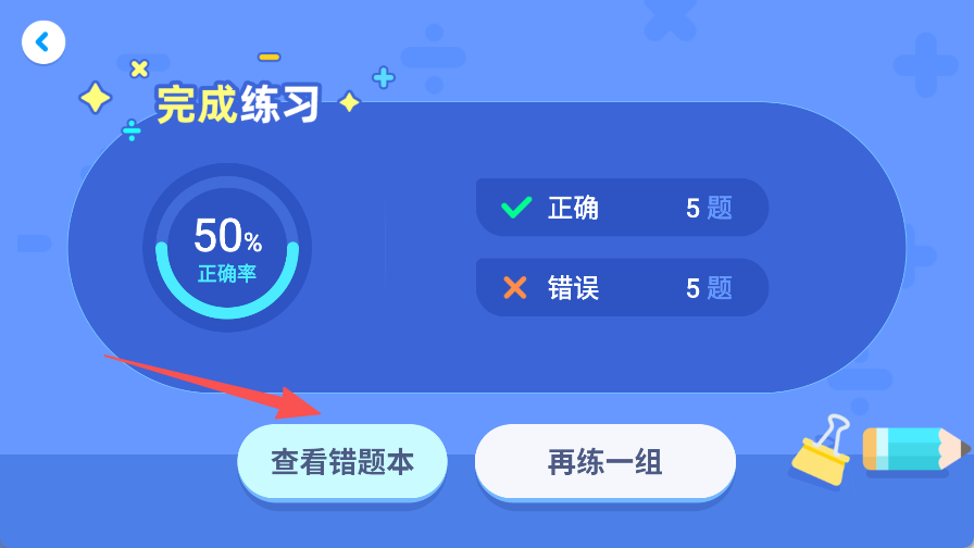 3、支持错题回顾功能,练习结束后可调取错题内容,重新梳理解题思路,强化对口算知识点的掌握。