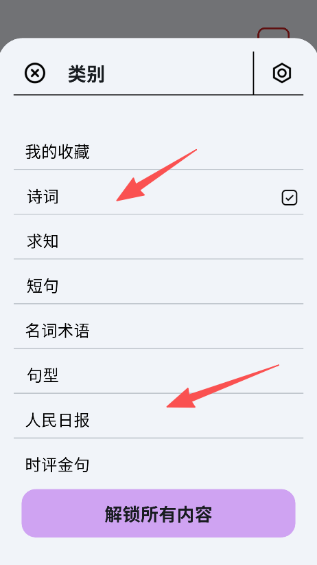 1、在类别列表中,选择“诗词”或“人民日报”分类。