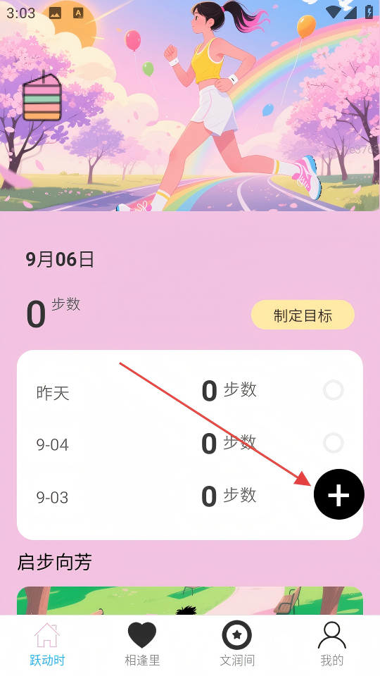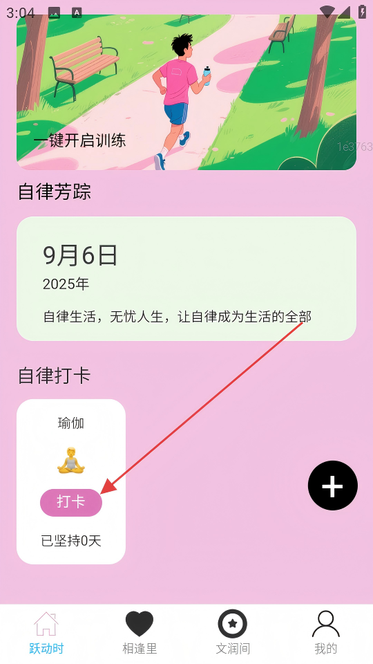 1、打开运动打卡类APP,点击页面中的“+”号。