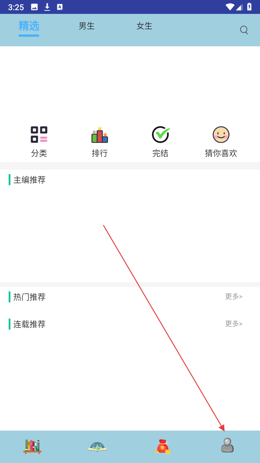 1、在精选页面,点击【右下角个人图标】,进入个人相关页面。