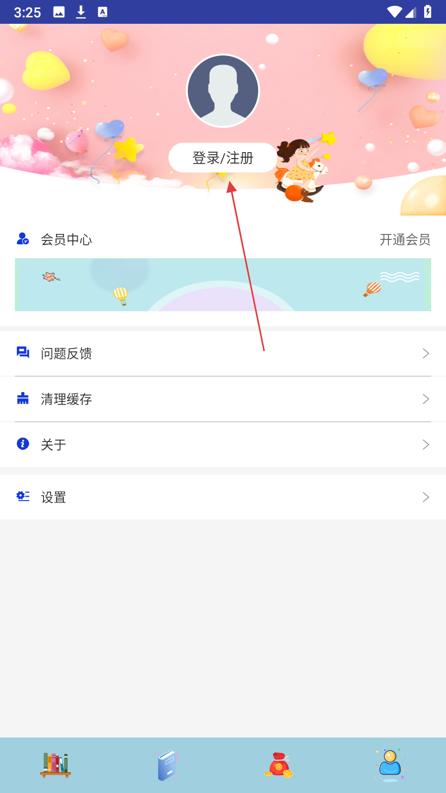 2、在个人相关页面,点击【登录/注册】按钮,进入登录页面。