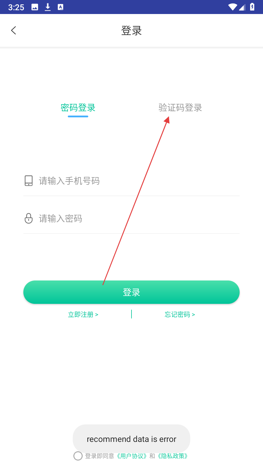 3、在登录页面,点击【验证码登录】选项。