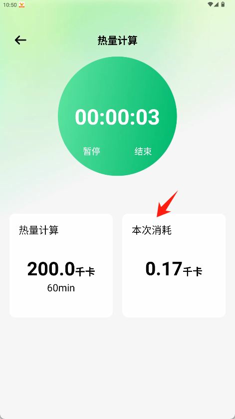 2、标注本次消耗热量数值区域,突出实时计算结果显示要点。
