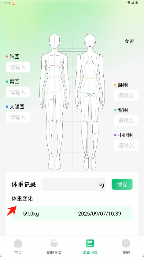 3、体重数据输入框与保存键,记录更新操作核心步骤。