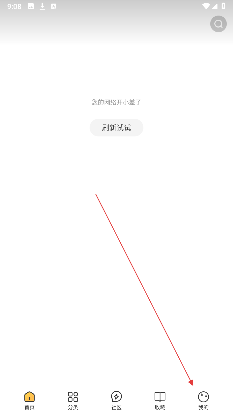 1、在网络异常页面,点击右下角【我的】,进入个人页面。