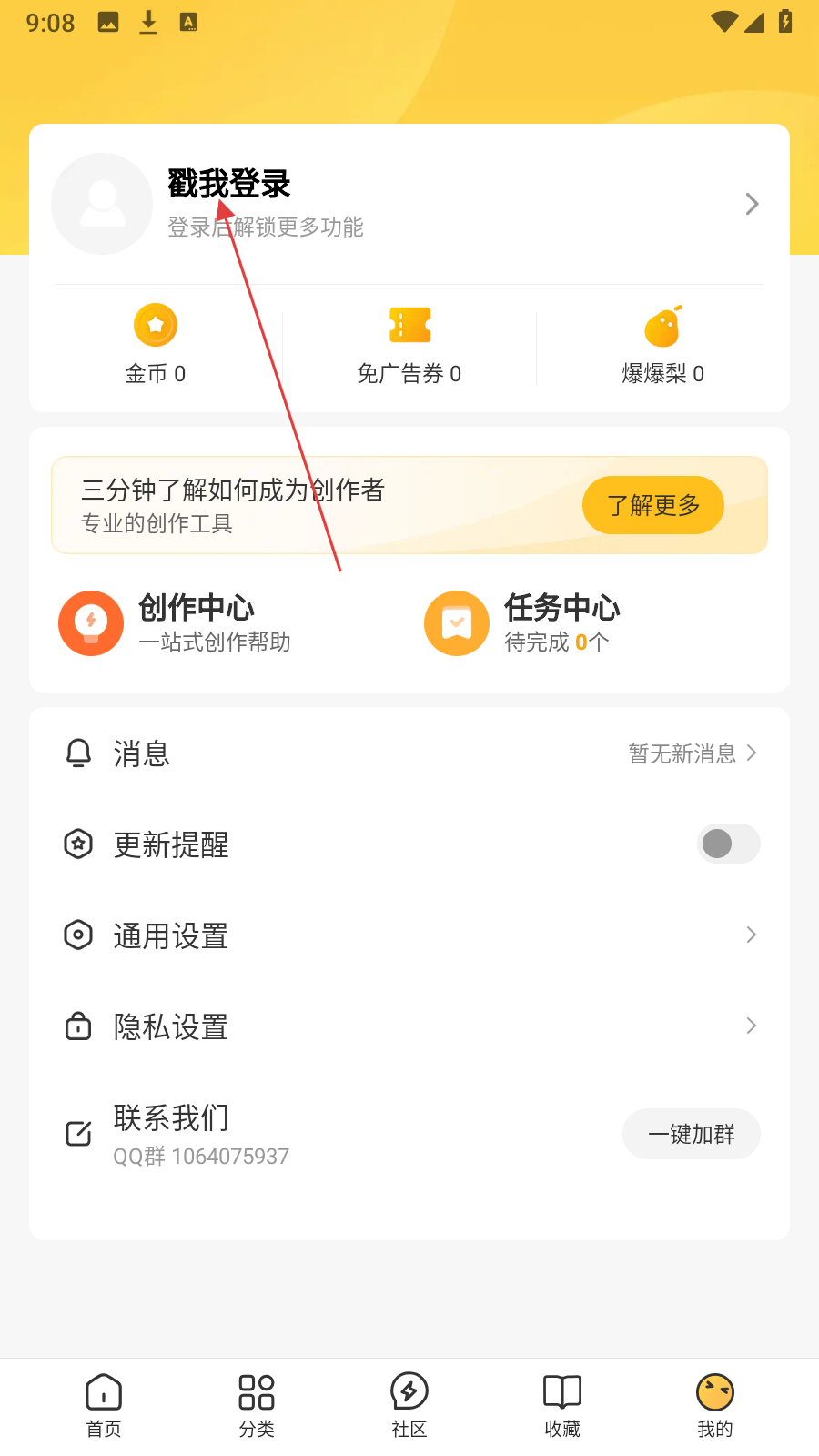 2、在个人页面,点击【戳我登录】,弹出选择登录方式的窗口。