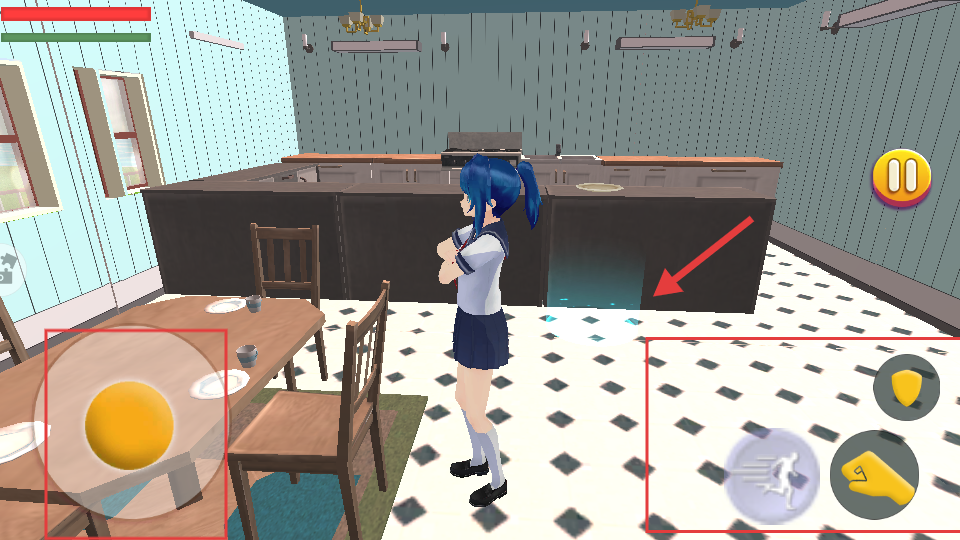 2、当前任务是【快速享用早餐-然后去学校-认识新朋友】,操控主角向走廊前方的厨房移动。