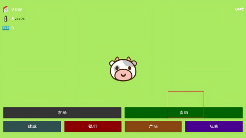 1、游戏开始,界面有【市场】【建造】等功能区,还有【卖奶】选项,可先熟悉各区域,为后续操作做准备。