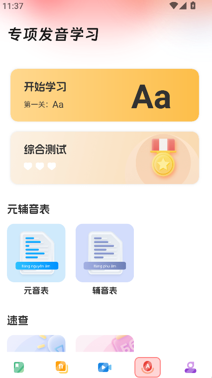 4、专项发音学习板块帮助从零基础开始,逐步训练发音,形成清晰标准的口语表达。