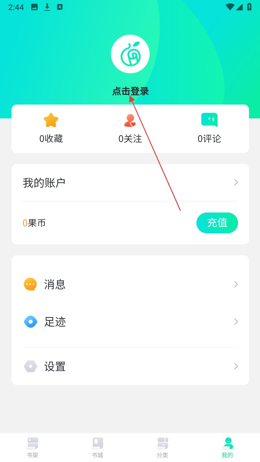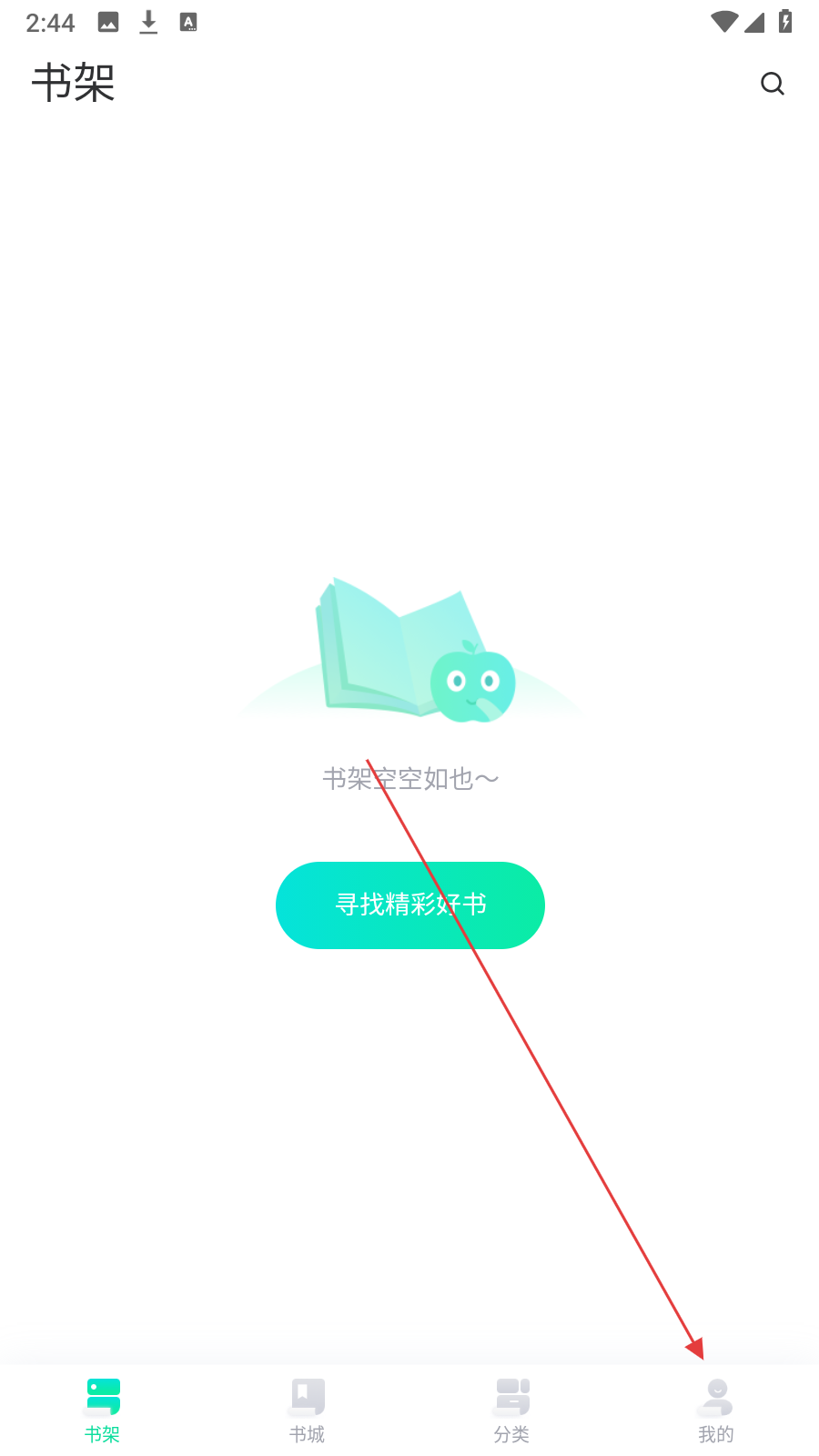 1、在书架页面,点击右下角【我的】,进入个人中心页面。