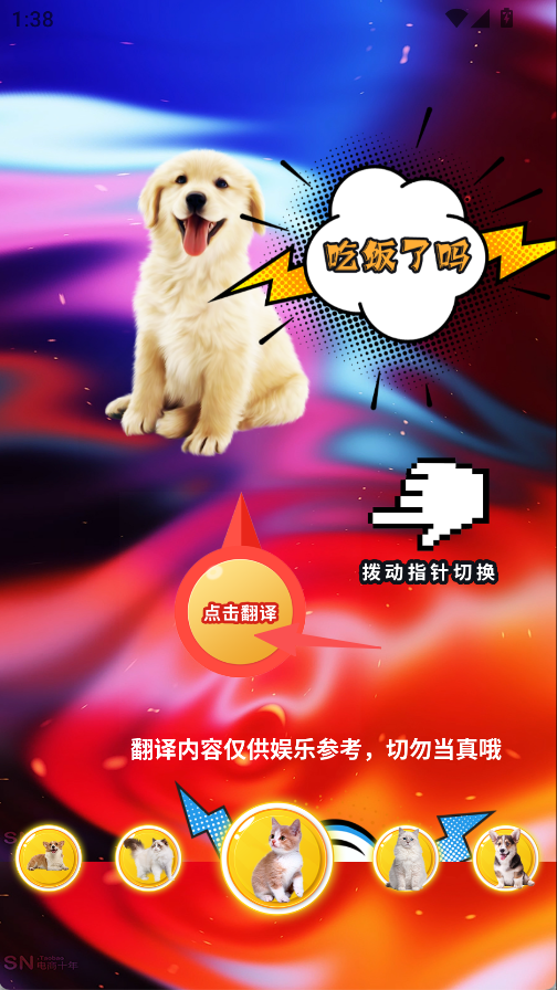 2、宠物切换与翻译联动,拨动指针即可更换宠物形象,不同宠物对应专属互动,提升操作趣味性。