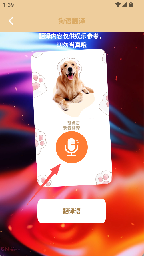 2、在“狗语翻译”页面,点击麦克风图标进行录音翻译。