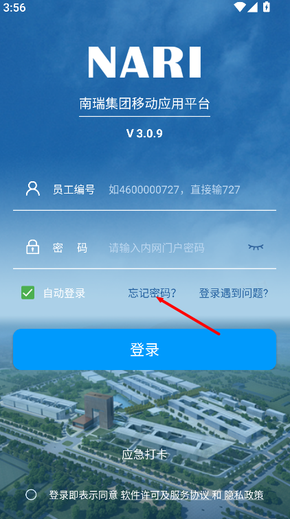 1、打开已安装的NARI APP,在登录界面中找到并点击“忘记密码”选项。