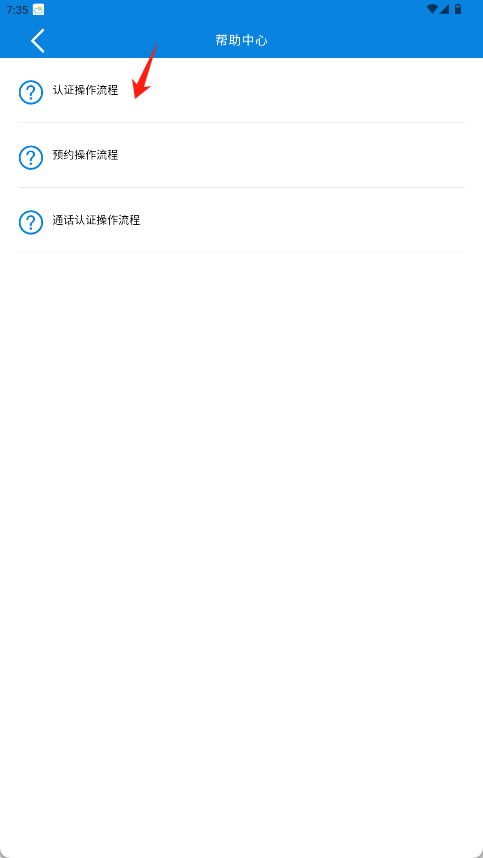 2、于帮助中心页面选择所需查看的具体操作流程如认证操作流程。