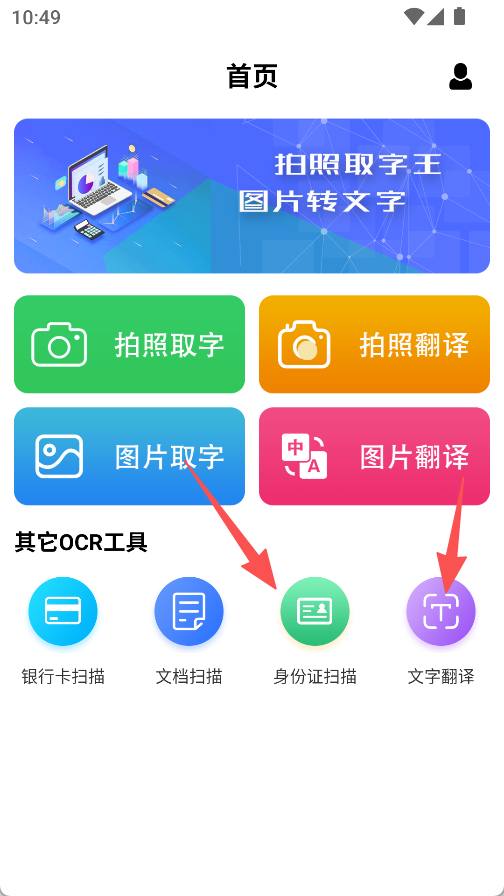 1、操作简便易上手,拍照取字、翻译及各类扫描工具,点击即可启动,能快速开展文字处理操作。