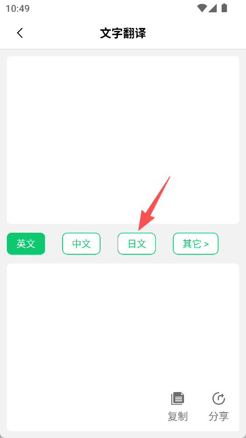 3、文字翻译完成后可复制、分享结果,方便将翻译内容用于其他场景,提升使用灵活性。