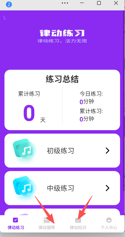 1、点击“律动练习”,选择初级或中级练习。