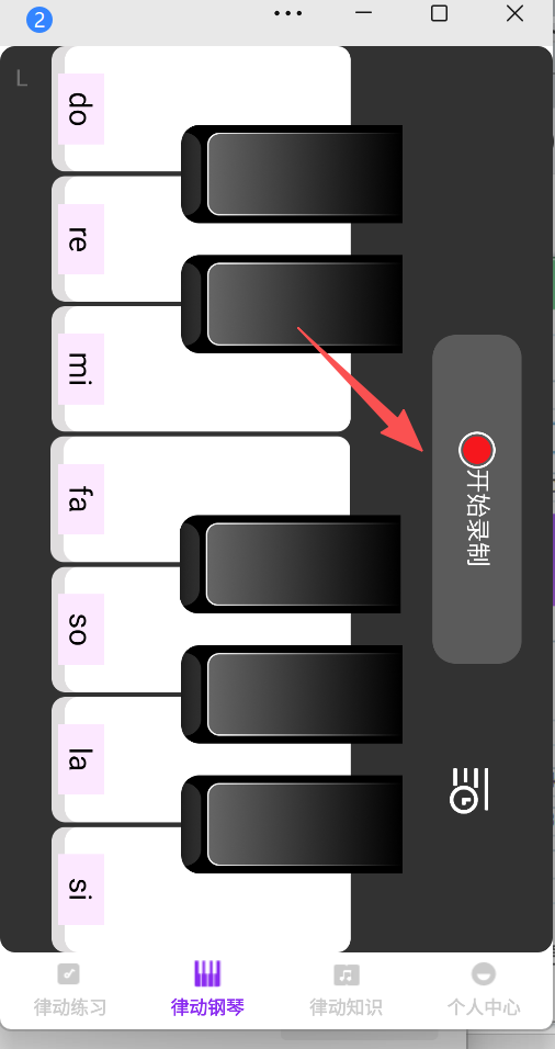 2、点击“律动钢琴”,弹奏do、re等音符,可点“开始录制”保存弹奏。