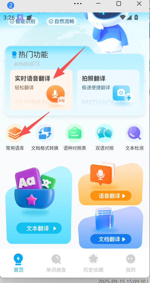 1、使用“拍照翻译”“文本翻译”“文档翻译”功能,满足不同类型的翻译需求。
