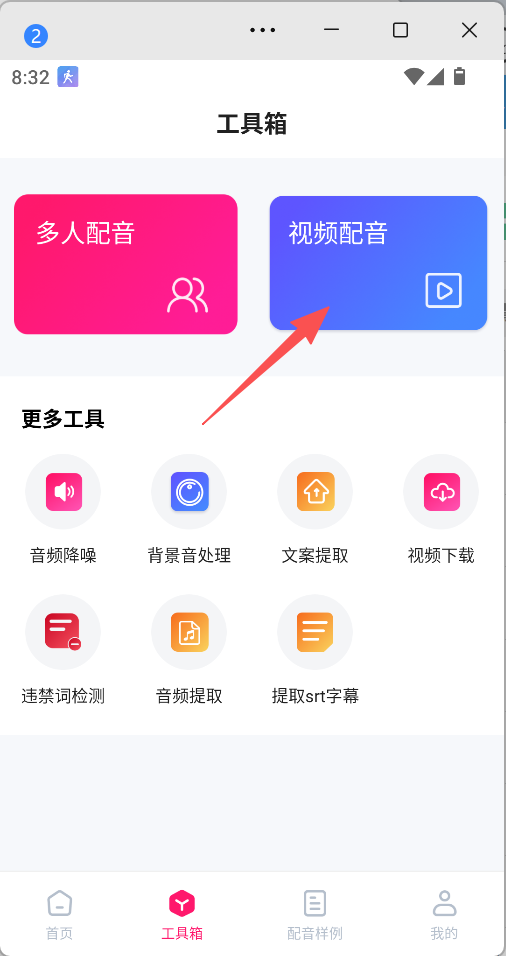 2、进入“工具箱”、可使用多人配音、视频配音功能,还能用到音频降噪等工具。