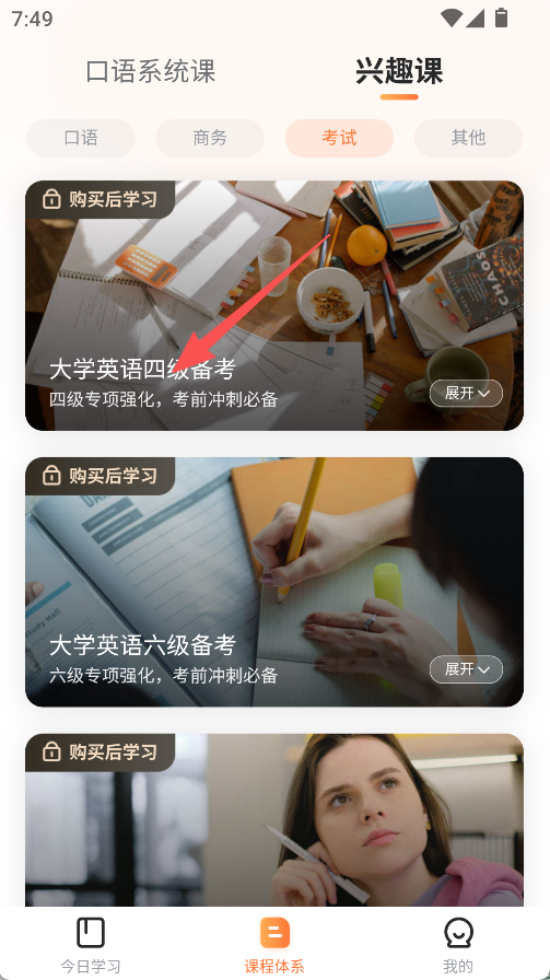 3、查看“大学英语四级备考”“大学英语六级备考”等课程。