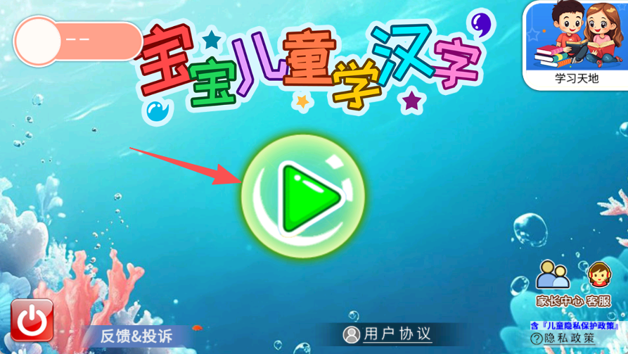 1、清新界面配绿色启动键,标识清晰,快速引导进入汉字学习,适配儿童习惯。